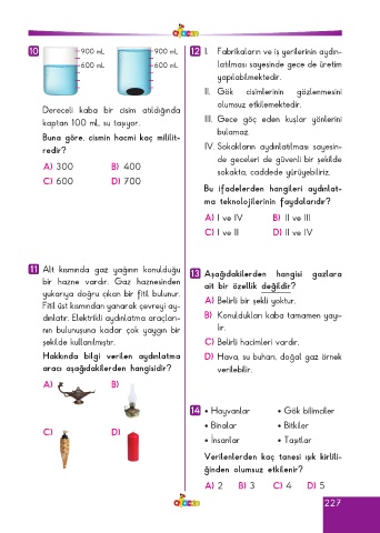 Page 227 - ATA YAYINCILIK 4. Sınıf Afacan Soru Bankası