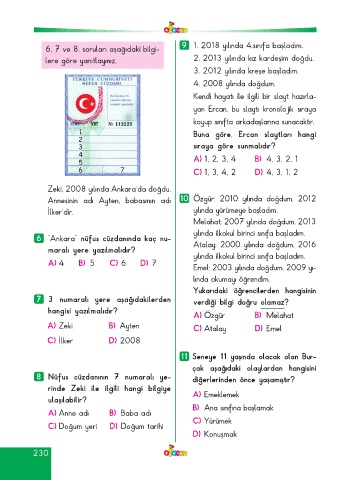 Page 230 - ATA YAYINCILIK 4. Sınıf Afacan Soru Bankası