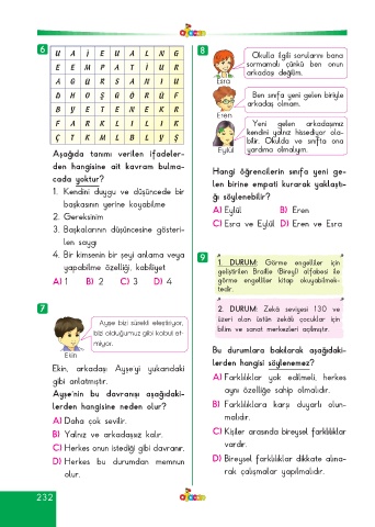 Page 232 - ATA YAYINCILIK 4. Sınıf Afacan Soru Bankası