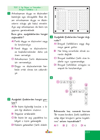 Page 233 - ATA YAYINCILIK 4. Sınıf Afacan Soru Bankası