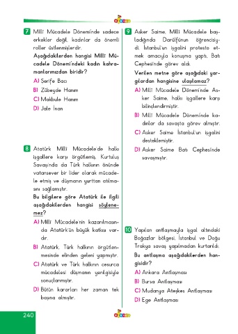 Page 240 - ATA YAYINCILIK 4. Sınıf Afacan Soru Bankası