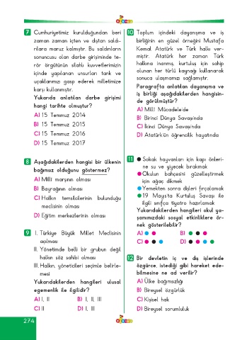 Page 274 - ATA YAYINCILIK 4. Sınıf Afacan Soru Bankası