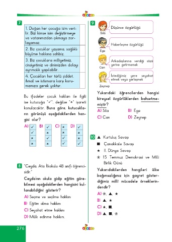 Page 276 - ATA YAYINCILIK 4. Sınıf Afacan Soru Bankası