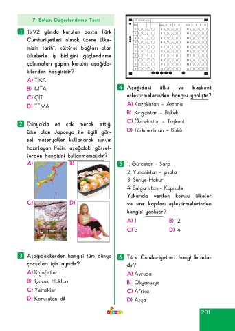 Page 281 - ATA YAYINCILIK 4. Sınıf Afacan Soru Bankası