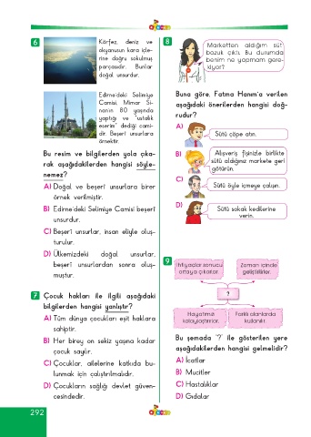 Page 292 - ATA YAYINCILIK 4. Sınıf Afacan Soru Bankası