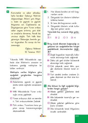 Page 301 - ATA YAYINCILIK 4. Sınıf Afacan Soru Bankası