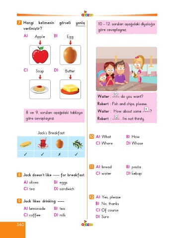 8 Jack doesn’t like ---- for breakfast. C) water D) kebap
