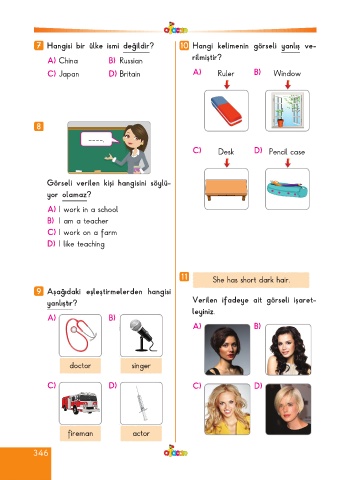 7 Hangisi bir ülke ismi değildir? 10 Hangi kelimenin görseli yanlış ve-