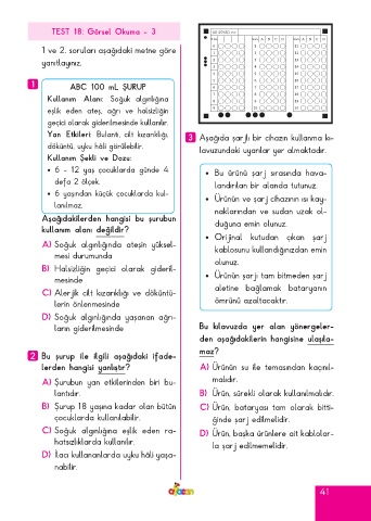 Page 41 - ATA YAYINCILIK 4. Sınıf Afacan Soru Bankası