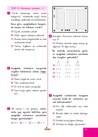 Page 43 - ATA YAYINCILIK 4. Sınıf Afacan Soru Bankası
