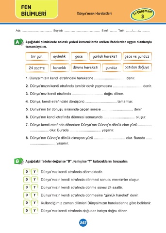 BİLİMLERİ Dünya’mızın Hareketleri Ev Çalışmam