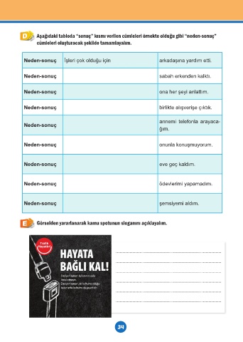 Aşağıdaki tabloda “sonuç” kısmı verilen cümleleri örnekte olduğu gibi “neden-sonuç”