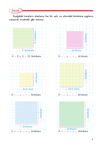 A = 6 x 6 = 36 birimkare A = ..... x ..... = ..... birimkare