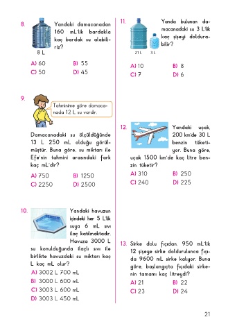B) 3000 L 600 mL A) 21 B) 22