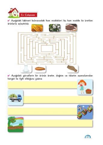 ✔ Aşağıdaki labirent bulmacadaki ham maddeleri, bu ham madde ile üretilen