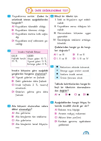 5. ÜNİTE DEĞERLENDİRME TESTİ