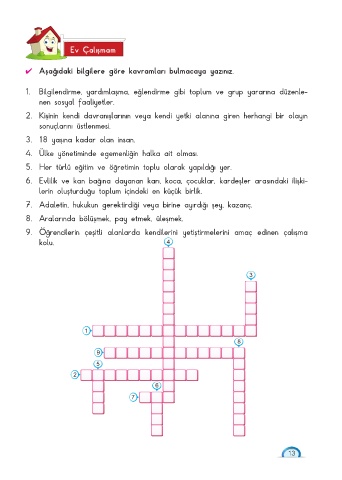 ✔ Aşağıdaki bilgilere göre kavramları bulmacaya yazınız.