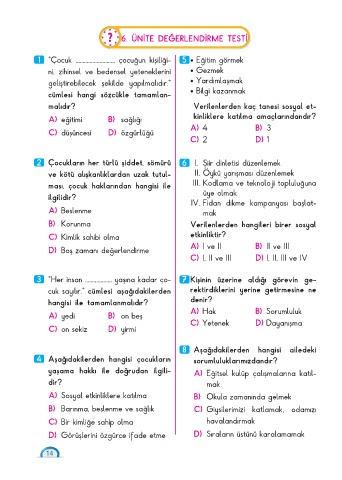 6. ÜNİTE DEĞERLENDİRME TESTİ