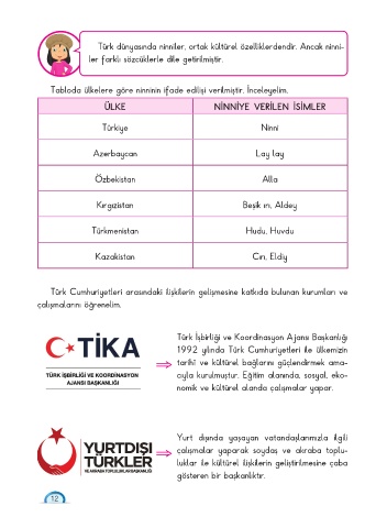 Tabloda ülkelere göre ninninin ifade edilişi verilmiştir. İnceleyelim.