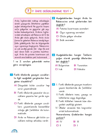 7. ÜNİTE DEĞERLENDİRME TESTİ 1