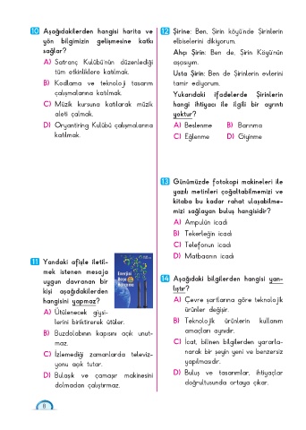 10 Aşağıdakilerden hangisi harita ve 12 Şirine: Ben, Şirin köyü’nde Şirinlerin
