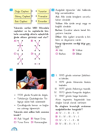Yukarıda sözü edilen halk ozanımız A) IV - I - III - II - V