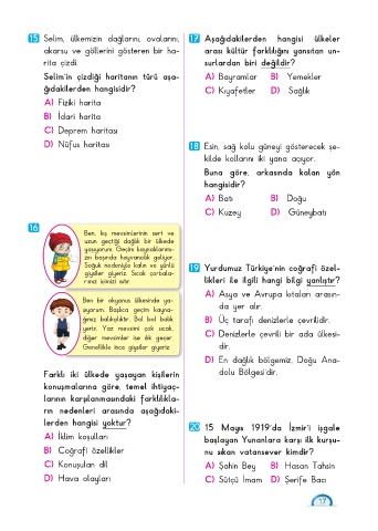 15 Selim, ülkemizin dağlarını, ovalarını, 17 Aşağıdakilerden hangisi ülkeler