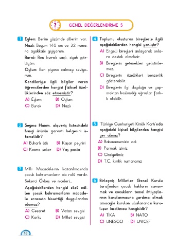 1 Eylem: Benim yüzümde çillerim var. 4 Toplumu oluşturan bireylerle ilgili