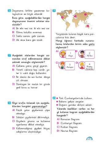 17 Aşağıdaki sözlerden hangisi za- Asya Afrika