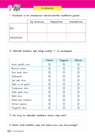 1.  Kendimizin ve bir arkadaşımızın tabloda belirtilen özelliklerini yazalım.