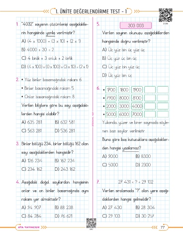 1. “4032” sayısının çözümlenişi aşağıdakile- 5. 303 003 2186