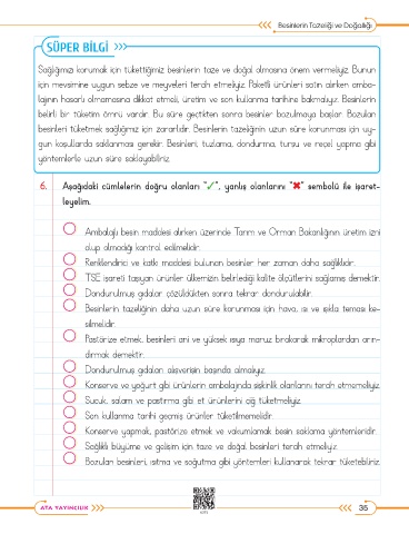 6. Aşağıdaki cümlelerin doğru olanları “✓”, yanlış olanlarını “✖” sembolü ile işaret-