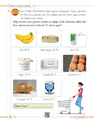 bir hafta önce alışverişe çıkan Esra aşağıda üzerinde fiyatları yazan ürünler-