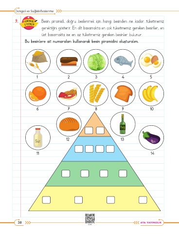 Bu besinlere ait numaraları kullanarak besin piramidini oluşturalım.