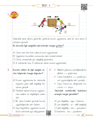 uyguladığımızda cisim hızlanır. B) yön değişikliği - zıt - şekil değişikliği