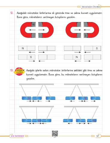 12. Aşağıdaki mıknatıslar birbirlerine ok yönünde itme ve çekme kuvveti uygulamıştır.