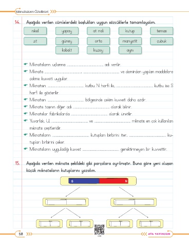 14. Aşağıda verilen cümlelerdeki boşlukları uygun sözcüklerle tamamlayalım.