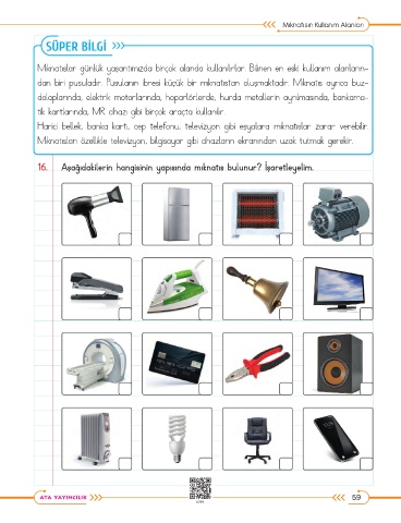 16. Aşağıdakilerin hangisinin yapısında mıknatıs bulunur? İşaretleyelim.