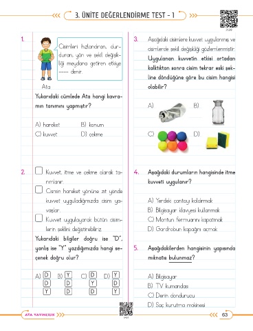 2. Kuvvet, itme ve çekme olarak ta- 4. Aşağıdaki durumların hangisinde itme