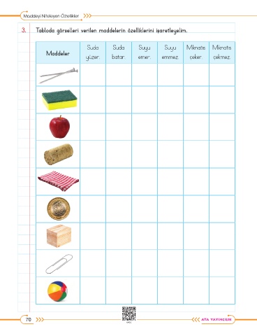3. Tabloda görselleri verilen maddelerin özelliklerini işaretleyelim.