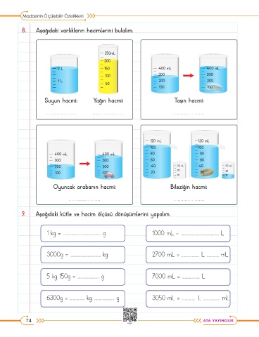 9. Aşağıdaki kütle ve hacim ölçüsü dönüşümlerini yapalım.
