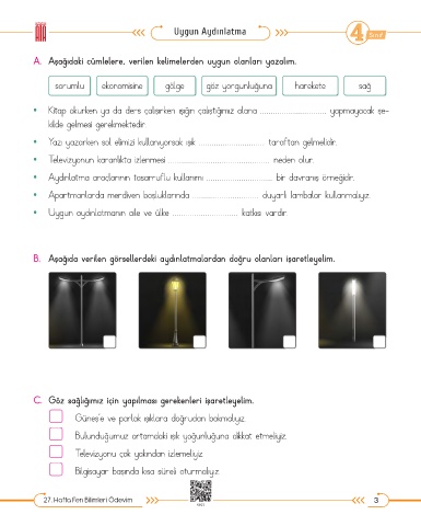 B. Aşağıda verilen görsellerdeki aydınlatmalardan doğru olanları işaretleyelim.