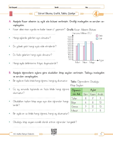 A. Aşağıda Koçer ailesinin üç aylık aile bütçesi verilmiştir. Grafiği inceleyelim ve soruları ce-