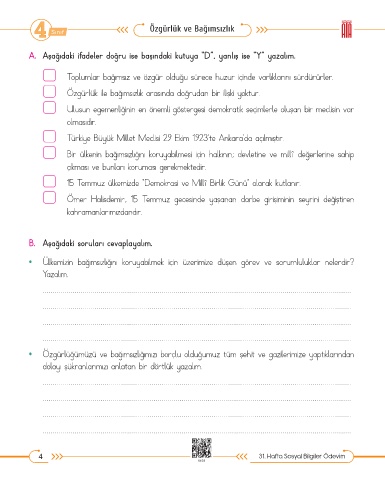 4 31. Hafta Sosyal Bilgiler Ödevim