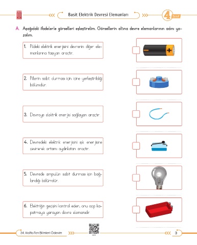 A. Aşağıdaki ifadelerle görselleri eşleştirelim. Görsellerin altına devre elemanlarının adını ya-