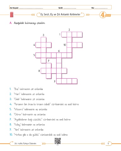 Ad-Soyad: ............................................... Sınıfı: ......................... No: .........................
