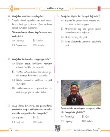 dikişsiz kumaşlar kullanırlar.” B) Hindistan’da sağ elle yemek yemek