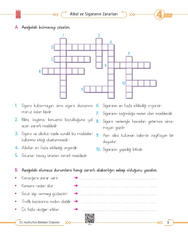 B. Aşağıdaki olumsuz durumlara hangi zararlı alışkanlığın sebep olduğunu yazalım.