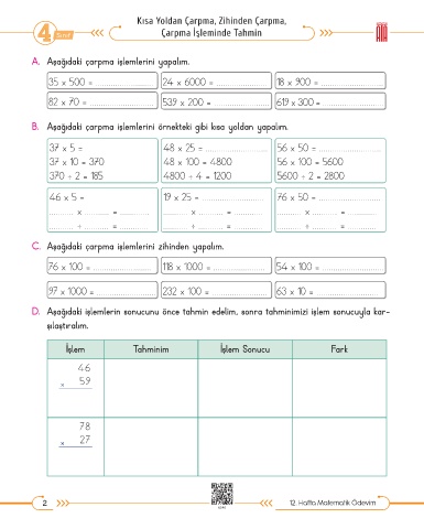 A. Aşağıdaki çarpma işlemlerini yapalım.