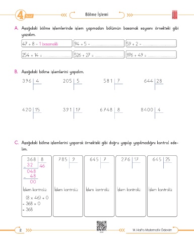 B. Aşağıdaki bölme işlemlerini yapalım.